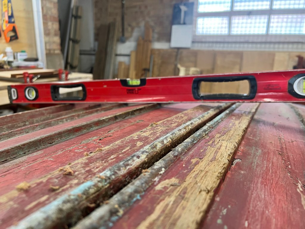There were a few soft and split timbers and these had their fastenings cut off and driven carefully out and the degraded wood cut away.