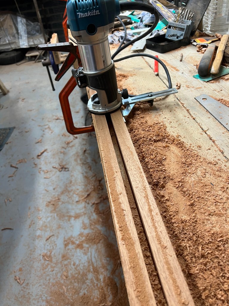 The centre plate slot was marked on the new timber and the slot cut out with saw and router. The timber was then further shaped, tapered and reduced to a tidy profile before being glued and screwed to the boat. The new keel will give her something to sit on and allow for a slightly broader centre plate to be made.