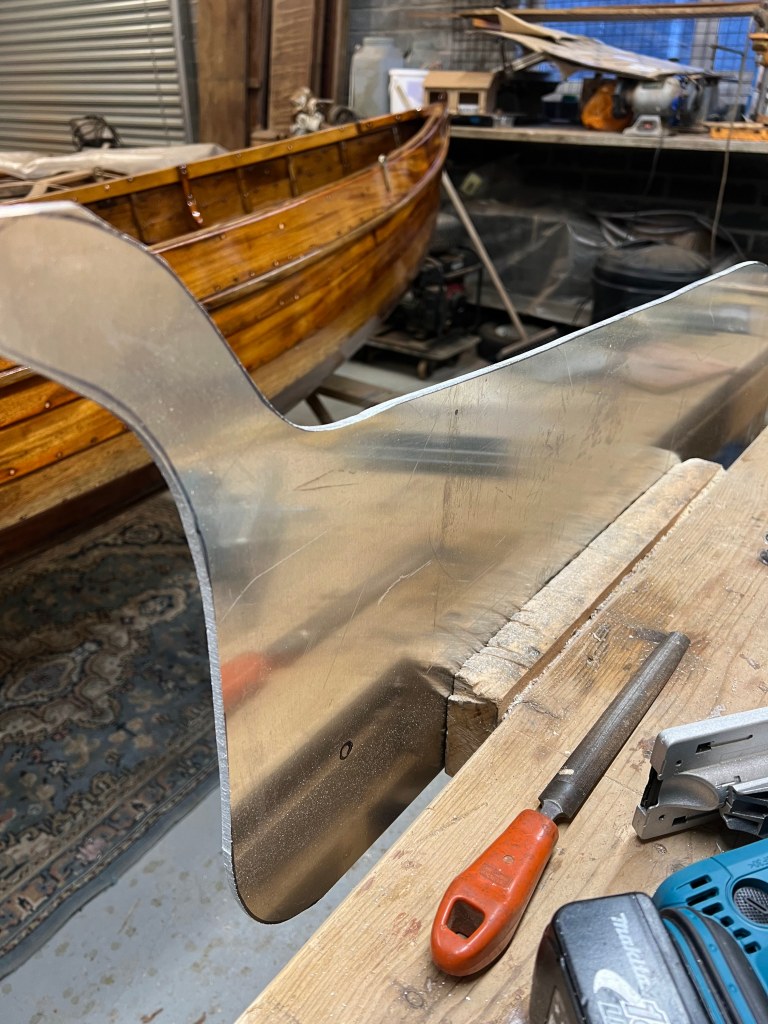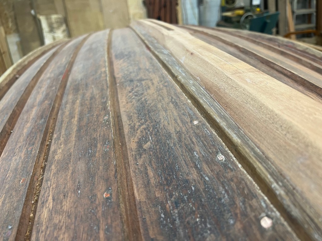 The brass keel band was taken off and a suitable length of sapele was worked to fit over the boat’s keel plank.