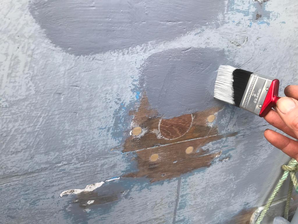 Now we continue with some jobs on the hull including plugging some holes in her bottom and topsides from removed fittings and priming the bottom.
