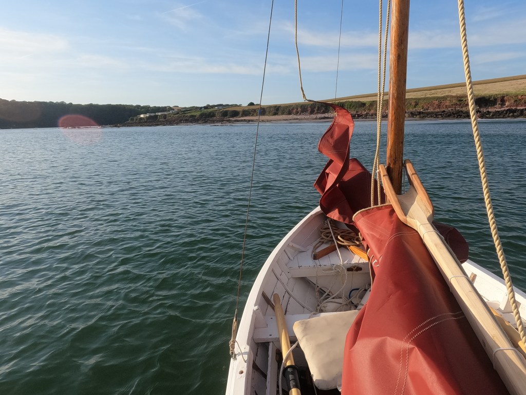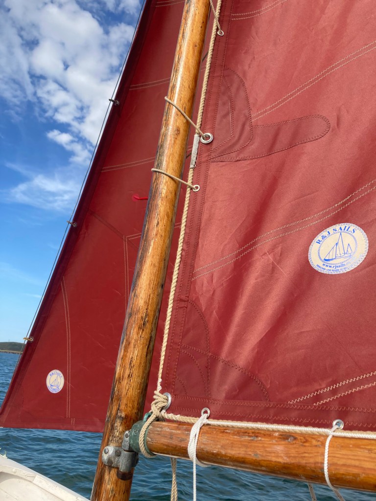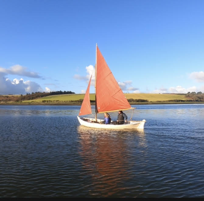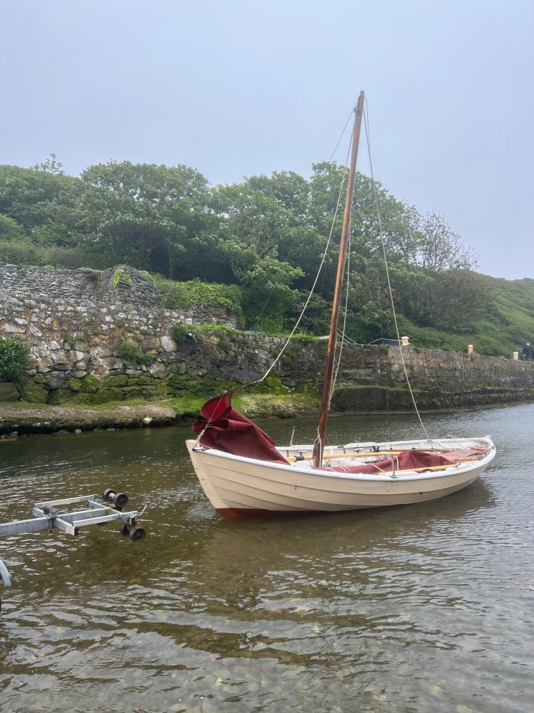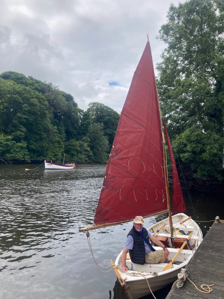 For a few years I had ‘Corianne’ afloat on the River Severn at Worcester near where I lived and just used her for recreational rowing as she pulls superbly. My father gifted me a purpose made fitted cover to keep the weather out of her. I never stepped her mast or tried sailing her on inland waters. However, in the intervening years I have been concentrating on Redwing sailing and spent a decade bringing back to life a 26ft motor launch on the Severn so ‘Corianne’ spent a lot of time on her trailer not being used. When I moved to Pembrokeshire though, she came too and thanks to an introduction via a friend I got a spot to keep her at Angle. Although Redwing racing at Tenby has been our primary pastime ‘Corianne’ has had many outings on the Haven and we’ve found she’s an excellent little sea boat and sails well even when deep-reefed in conditions I’d be reluctant to take a Redwing out in. Prior to the 2020 Covid pandemic there had been bi-annual maritime gatherings on the Haven and ‘Corianne’ took part in the 2018 event and proved to be a versatile little day boat, handy under sail or oar.